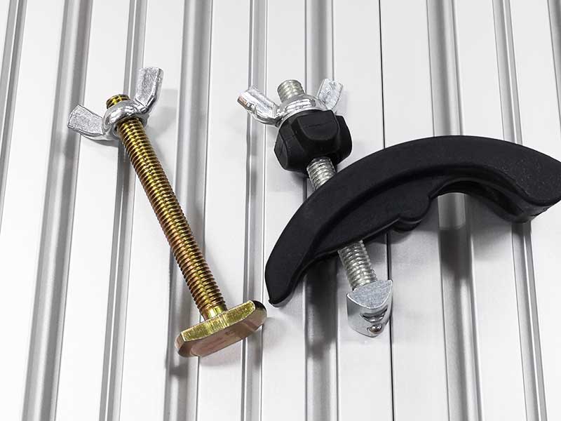 By two recesses, which are embedded in the slotted hole, can be easily adjusted. Powerful tightening of the wing nut provides the clamping force and fixes the workpiece.