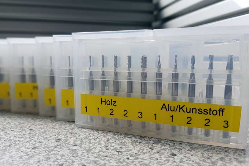 End mills set made of solid carbide for hardwood, softwood, aluminium, carbon fibre, and plastics such as PVC, Plexiglass or polycarbonate. You will receive diamond-toothed milling cutters of industrial quality. Suitable for all CNC portal milling machines.