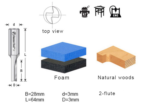These HSS end mills for foam with straight V-groove from the Amana Tool® milling tool range you usually choose when a balanced tool is essential for a smooth surface finish. As well as being used on CNC machines, the HSS end mills (High Speed Steel) are also ideal for hand feed operations on bench milling machines.
