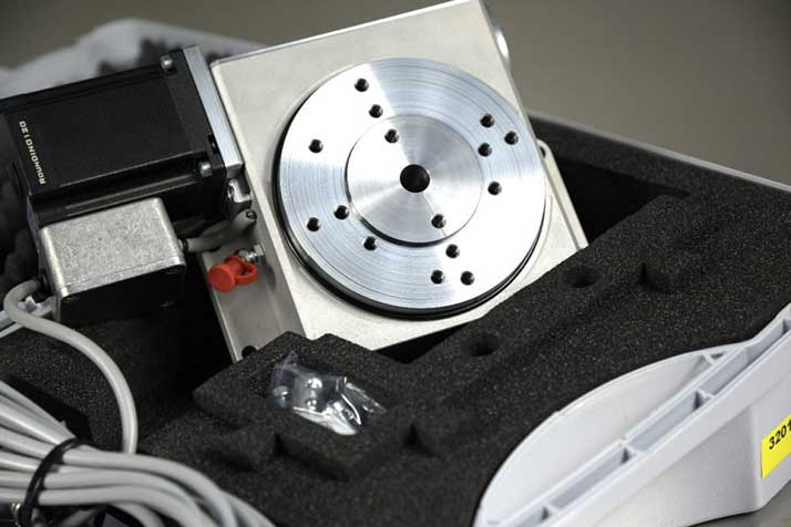 CNC rotary axis for 360-degree machining on milling machines. The rotation axis gives your 3-axis milling machine the 4th axis and enables it to engrave round workpieces or carry out 360-degree milling work.