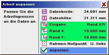 | Border X/Y: | In the following fields a border around the data up to the working frame can be input.