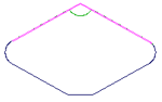 Eine Ecke aus 2 Vektoren abrunden oder mit einer Schrägen versehen. Ist ein oder beide Eckvektor(en) zu kurz, dann wird keine Abrundung oder Schräge erzeugt. In diesem Fall muß zuvor eine klare Ecke konstruiert werden.